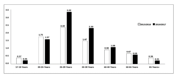 British driving data backs us up further. Youth are more likely to pass the driving test, possibly indicating greater mental fitness compared to more aged participants.