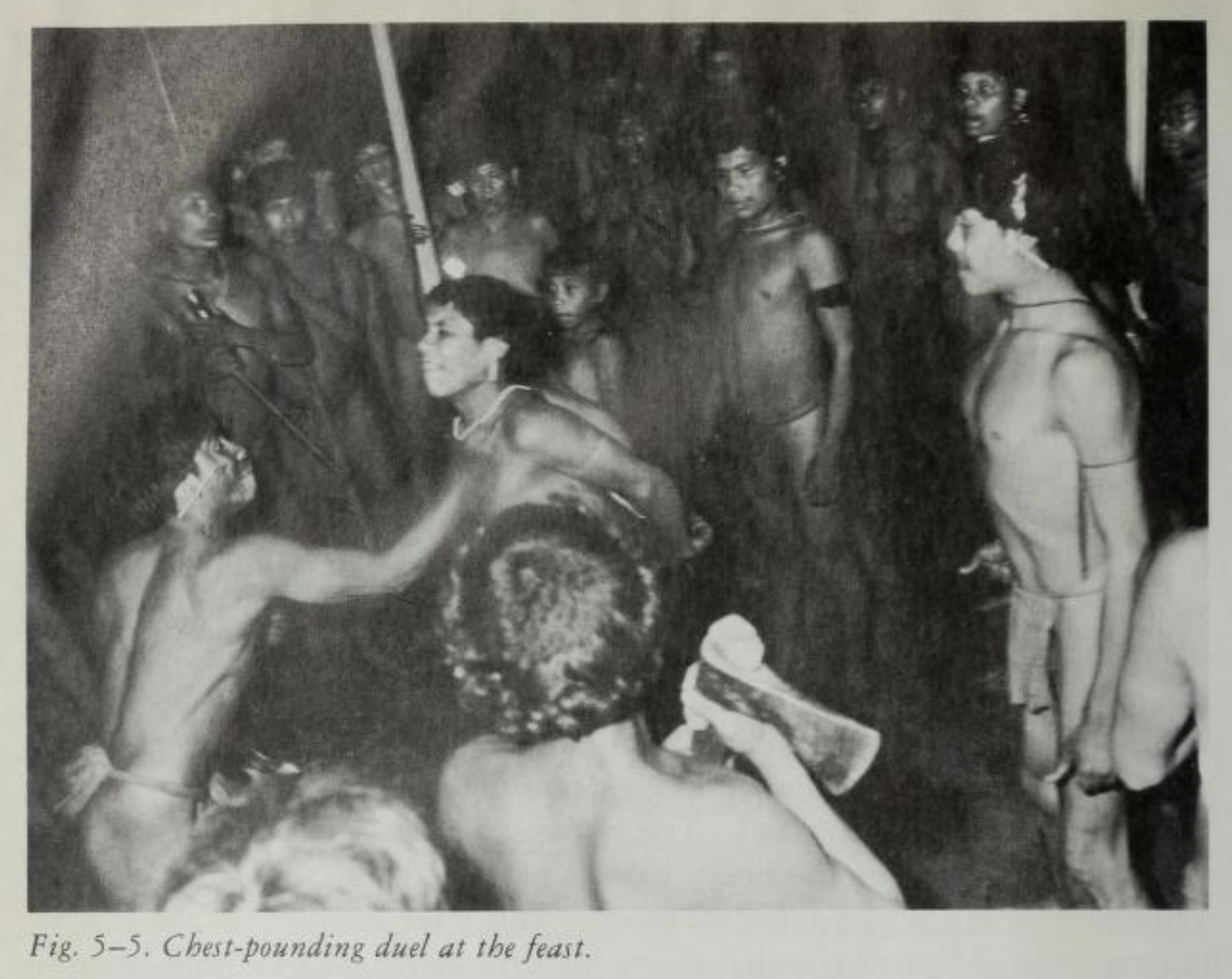 They have a series of graded forms of violence that ranges from chest-pounding and club-fighting duels to out-and-out shooting to kill. This gives them a good deal of flexibility in settling disputes without immediate resort to killing.