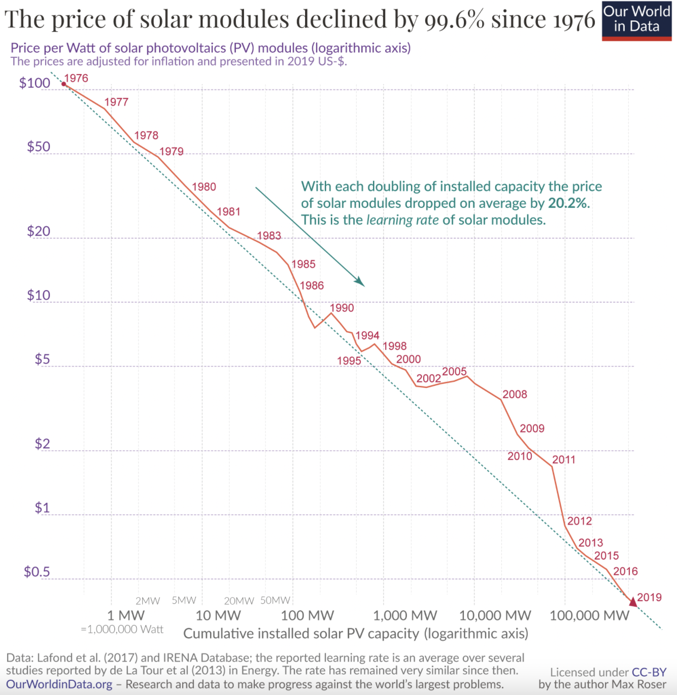 Hopefully the above gives a glimpse into the path solar has taken to go from what was one of the most expensive and inefficient sources of electricity to, in places, the world's cheapest form. It is a story, as Nemet notes, that took multiple companies, countries and individuals, all working together and sharing knowledge but it has given us one of the most transformational technologies in history and holds lessons for many future technologies as well.