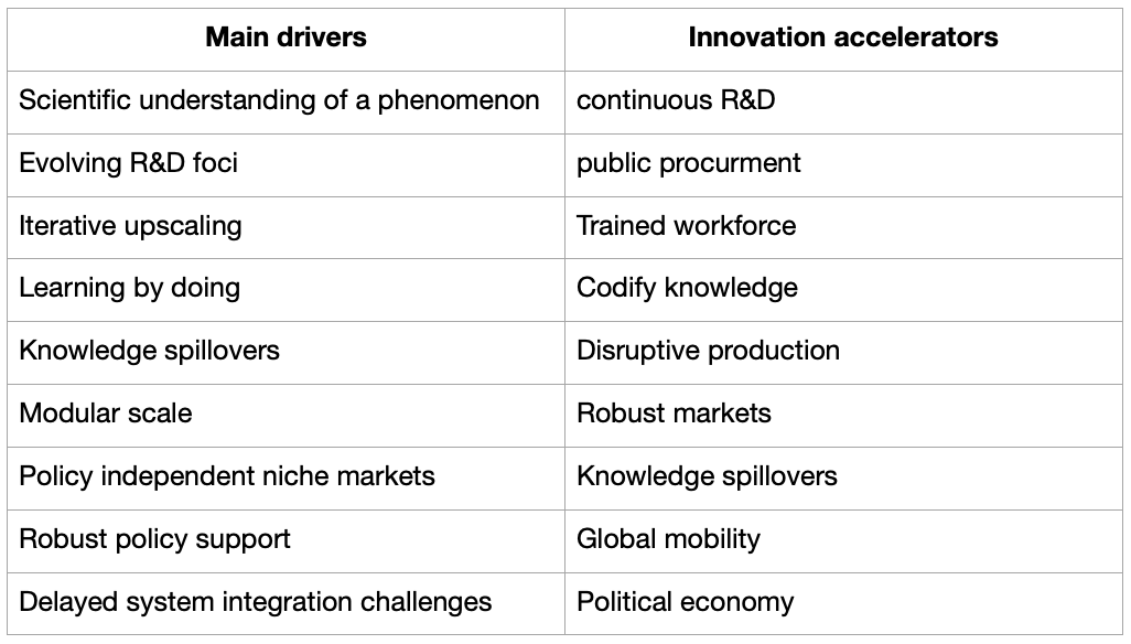 The book has two main lists covering spelling out a number of factors that helped in this process. One covers the main drivers of how solar became cheap and the other covers things that could accelerate technologies like solar. We won't look at all the points on either list but I thought it would be unfair not to at least include them in full so here they are below: