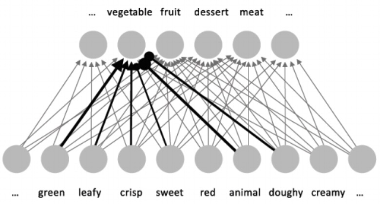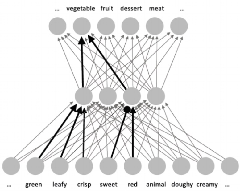 But that’s true only when the input features indicate the output categories in a linear, more-is-better, add-’em-up way. It works for categories where the whole is the (weighted) sum of its parts, but it fails when a category is defined by tradeoffs, sweet spots, winning combinations, poison pills, deal-killers, perfect storms, or too much of a good thing. Even the simple logical connector xor (exclusive or), “x or y but not both,” is beyond the powers of a two-layer neural network, because x-ness has to boost the output, and y-ness has to boost the output, but in combination they have to squelch it. …