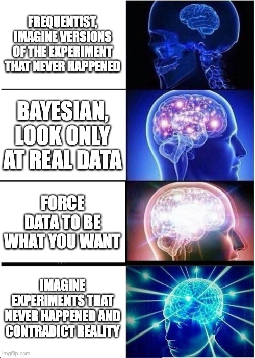 So, well, I don’t think Fisher is “evil” as, like, the idealized evil dictator of eviland. It’s his unfortunate circumstance that’s evil! Fisher is not evil, he is, let’s say, the rationalist nightmare. He’s a sort of genius, brilliant at math, always the smart guy in the room. From his point of view all the dumbwits around him are making mistakes at each turn so he invents a new statistical language which limits by construction answerable questions to objective ones and constrains other people to only use methods designed and vetted by a caste of trained statisticians led by him such that nobody can ever make mistakes or try to ask subjective questions, problem solved.