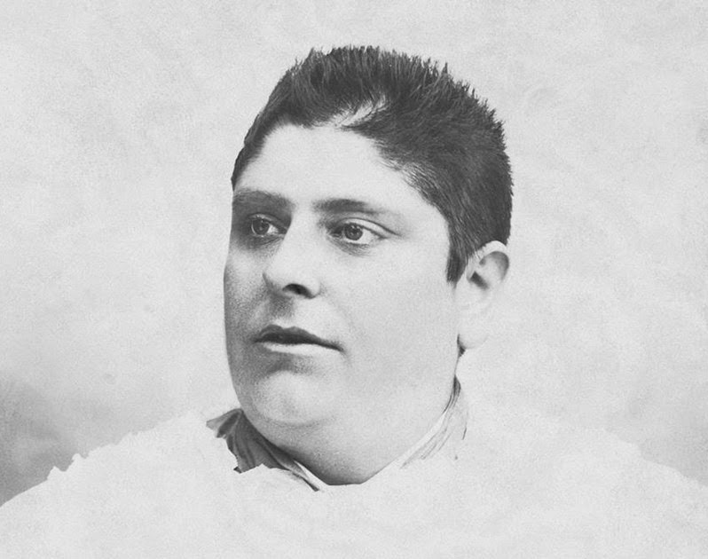 caption: Photograph of Alessandro Moreschi (1858-1922) ca. 1900 (author unknown), last surviving castato of the Sistine Chapel's Choir. Note the extended jaw and chin typical of the castrato morphology.