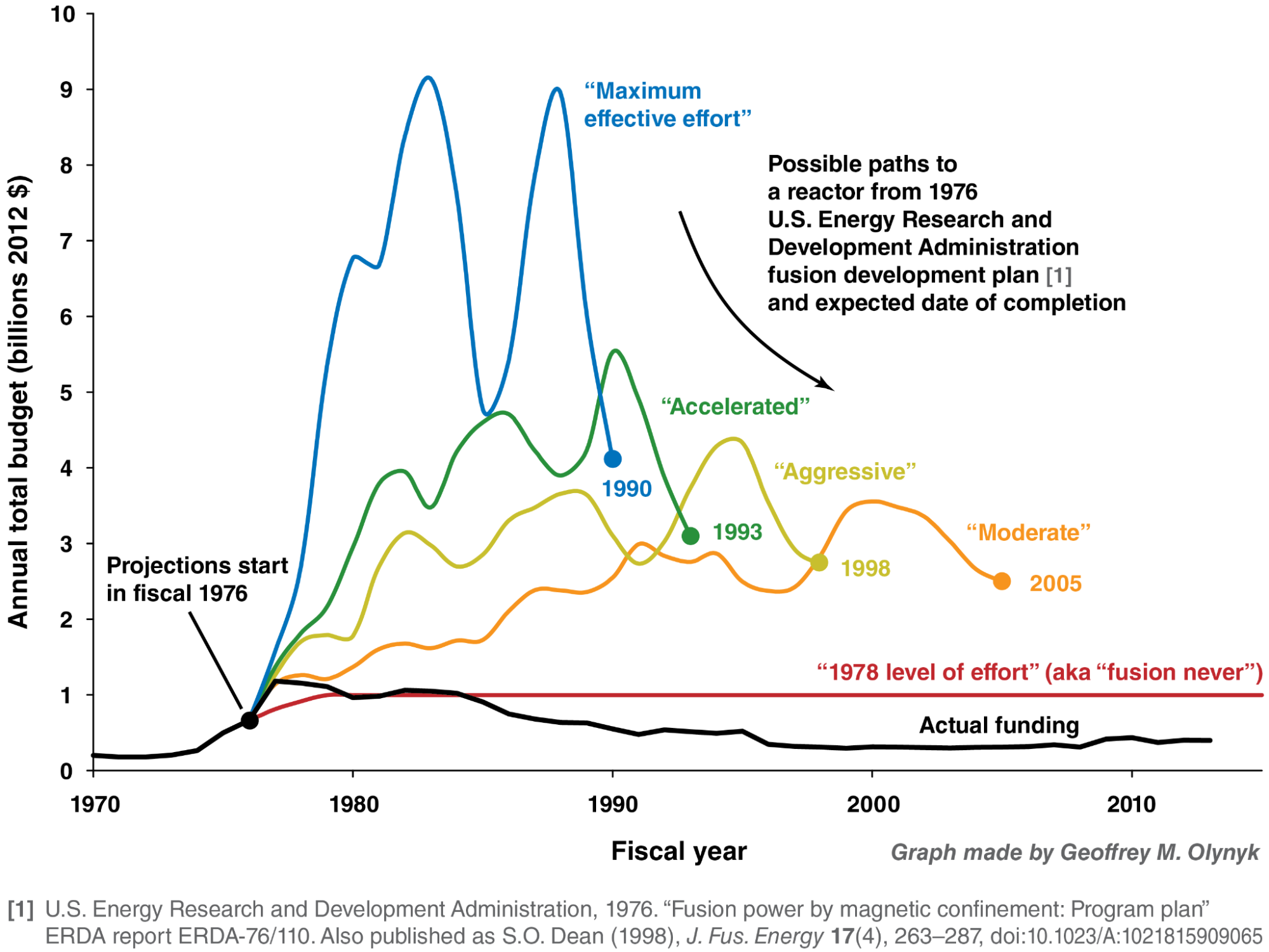 Actual funding for fusion in the US has been less than the ‘fusion never' plan.