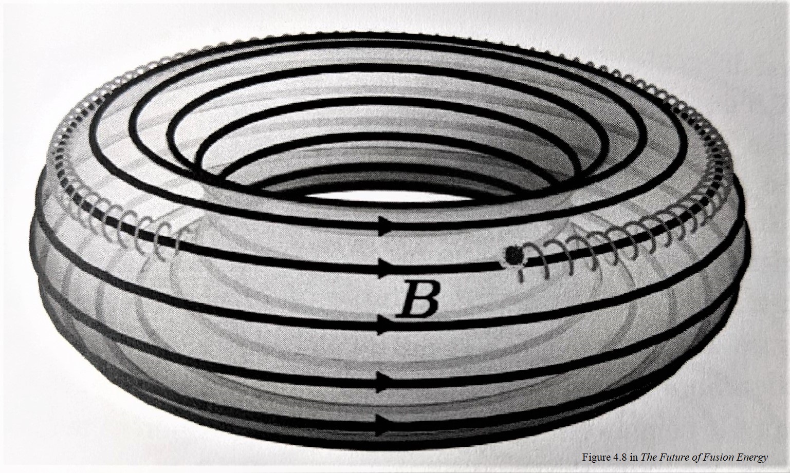 Figure 4: A charged particle spiraling around a doughnut-shaped magnetic field. |
