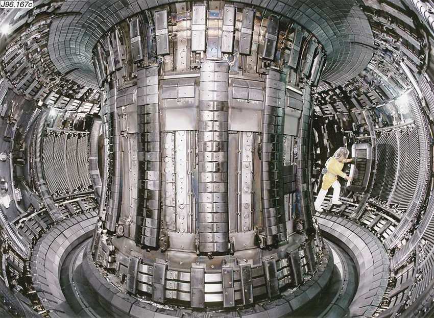 Figure 7: Someone inside JET. They have to wear a protective suit because tritium is nasty stuff. |